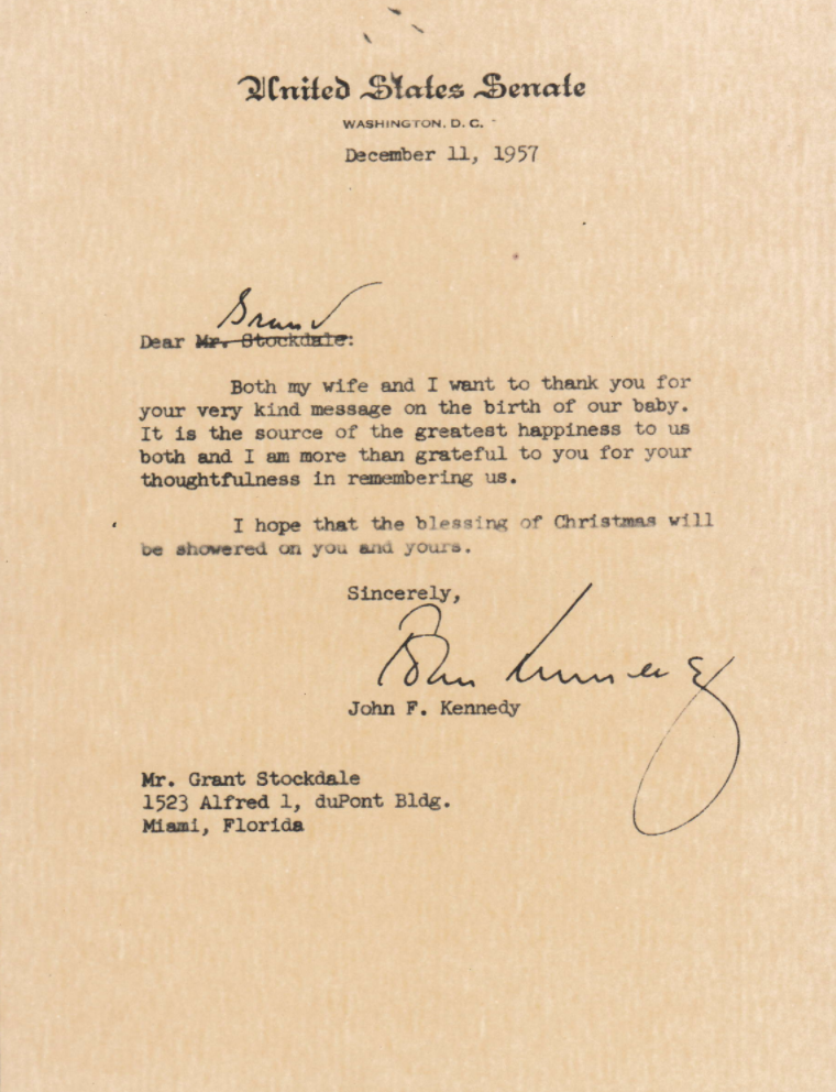 These letters from then Senator Jack Kennedy to Grant range from 1957 to 1959.